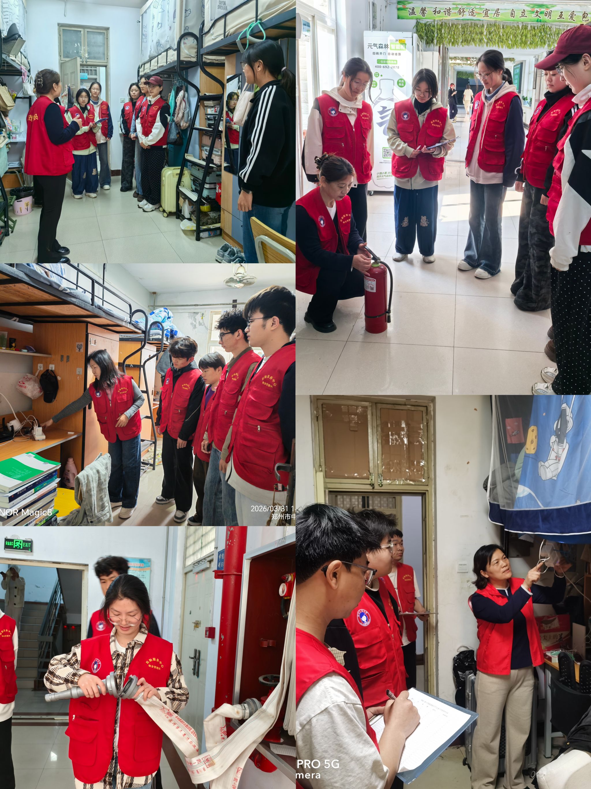 本次排查聚焦公寓安全管理薄弱环节与易被忽视的角落,采取拉网式、精细化方式开展巡查整治。重点检查楼道消防设施情况,确保消防通道畅通;深入宿舍严查各类违规用电行为,坚决整治违规使用大功率电器、私拉乱接线路等问题;现场引导学生强化安全自律,养成“人走断电”的良好习惯,杜绝因长时间通电带来的安全风险。排查过程中,宿管人员带队开展“实战教学”,在实地巡查中提升学生骨干的隐患识别与应急处置能力,推动学生自我管理、自我监督、共护安全。