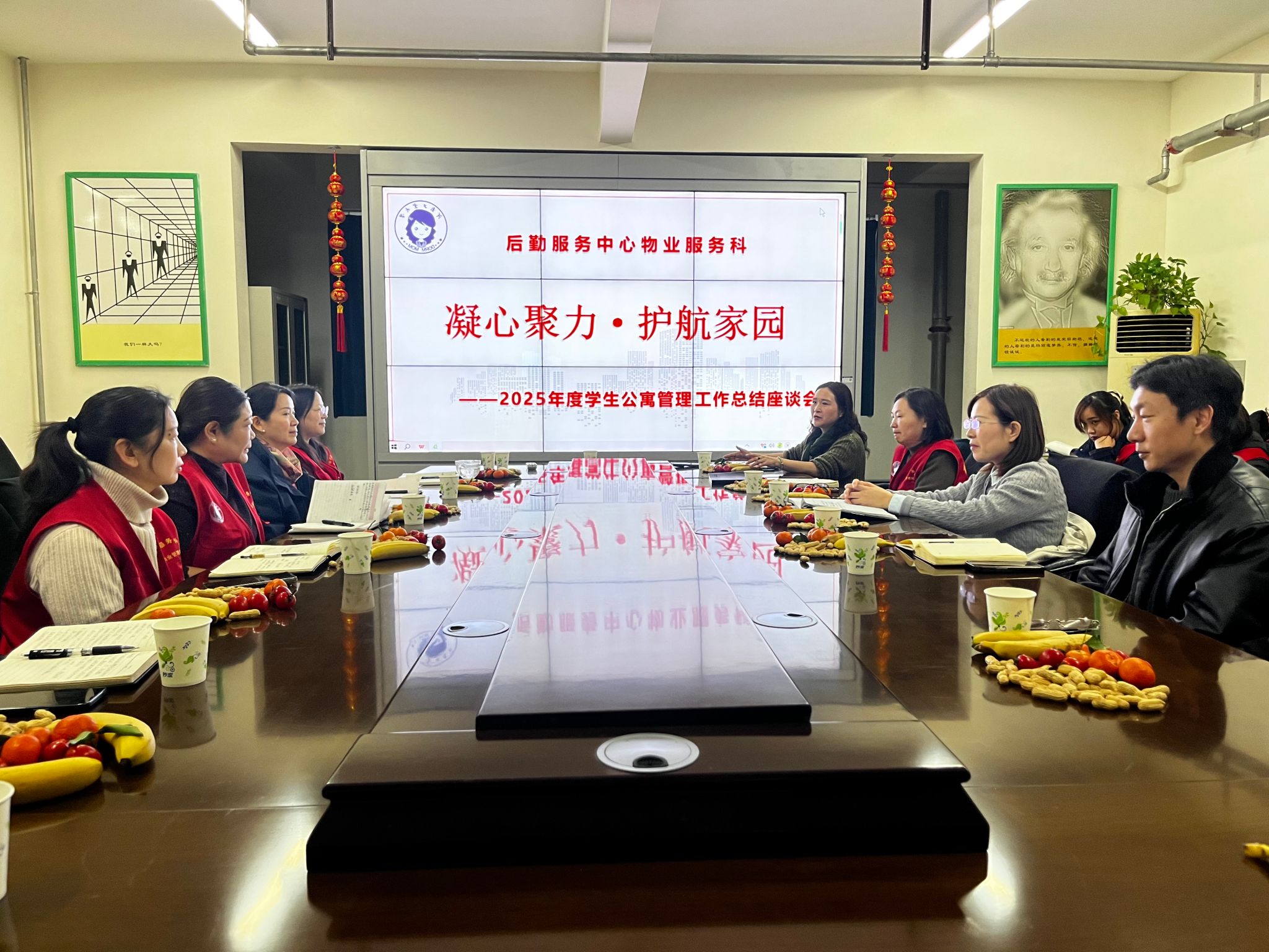 2026-01-17培根铸魂,育人于“寓” —后勤公寓中心召开年度工作总结座谈会1月16日,后勤服务中心物业服务科以“凝心聚力・护航家园”为主题,召开年度工作总结座谈会。后勤服务中心党委书记张小彩、副主任魏杰、物业服务科科长杜月华、副科长魏乔出席会议,40余位“宿妈”及物业公司代表参会。 会议伊始,杜月华对全年学生公寓管理工作进行了系统梳理与总结,对后续工作提出期望。随后,通过一段精心制作的视频,回顾了一年来公寓的重点工作与温馨瞬间。一幕幕真实场景,让在场人员深受触动。接下来,三位宿妈代表依次分享了各自在服务保障、... -
